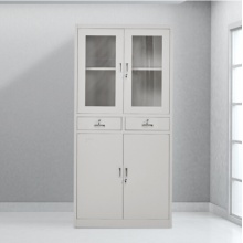 国产 中二斗柜 铁皮文件柜 资料整理柜档案柜铁皮柜子储物柜 玻璃+铁皮 1800*850*390mm